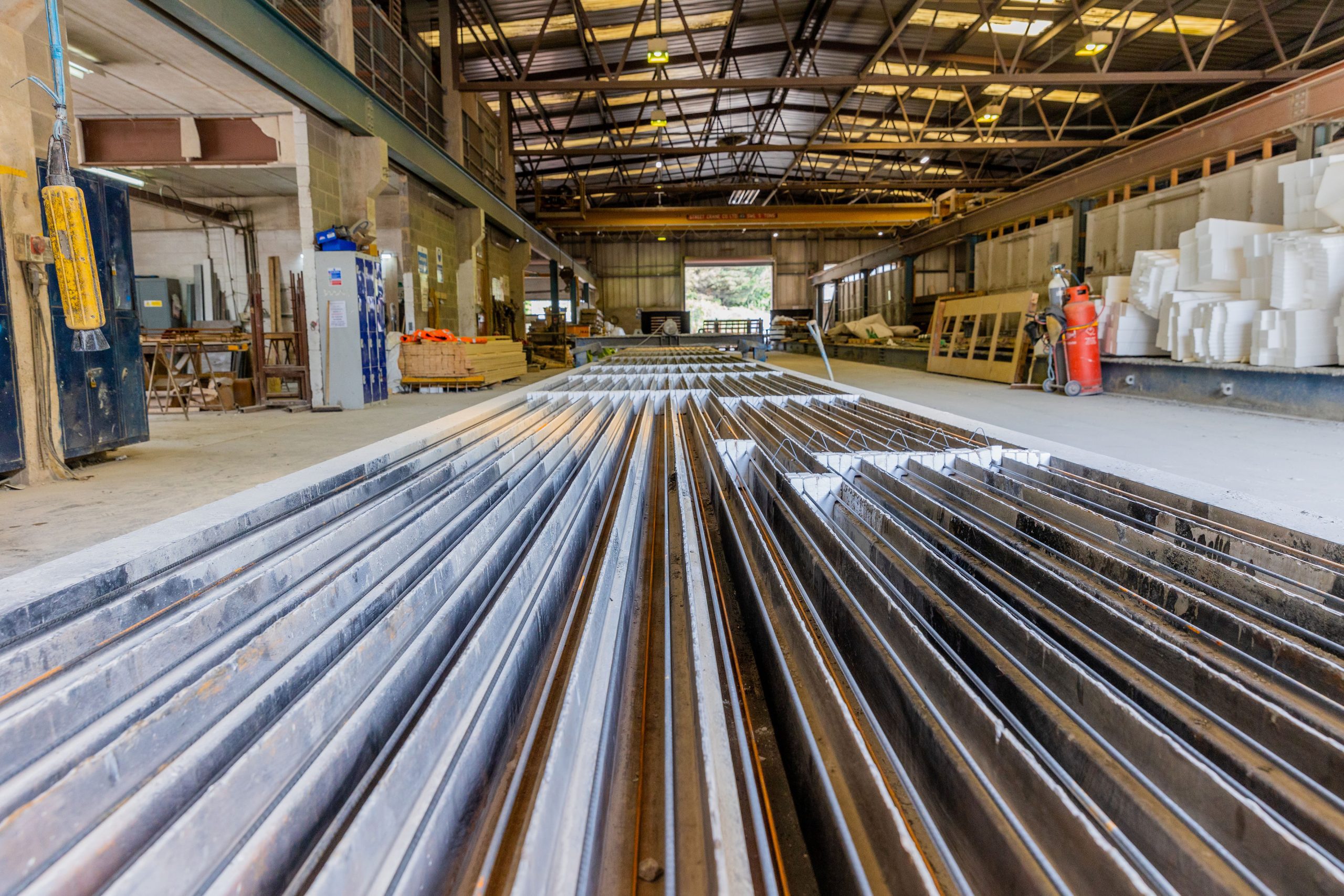 - Precast concrete beams are manufactured with reinforced steel inside them. These beams are placed across the span of the floor, providing structural support.