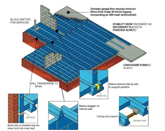- Concrete blocks, also known as infill blocks, are then placed between the beams. These blocks fit snugly and are supported by the beams, creating a solid base for the flooring.