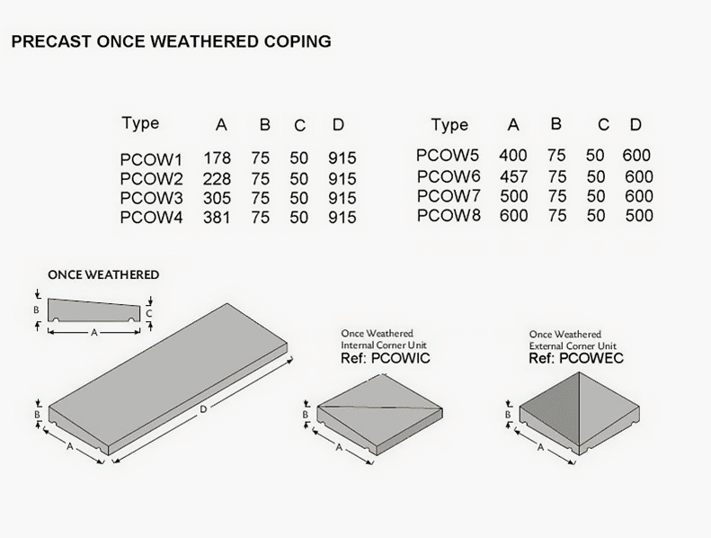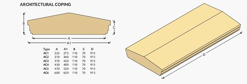 Our range of precast copings not only enhance the appearance of your wall, but also serve to protect it from staining and erosion caused by frost and rainfall. They’re also effective in preventing moisture from penetrating the cavity walls.