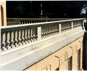 Our concrete balustrading is manufactured in plain grey, but can be finished in a choice of three other colours: Yorkstone, Bathstone (buff), and Portland (off-white).